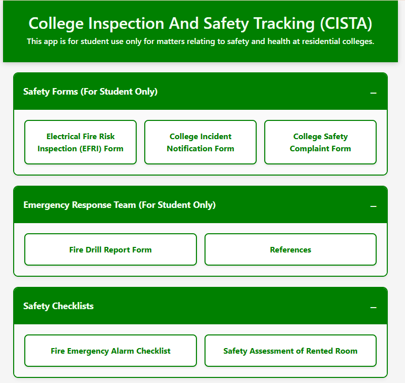 The College Inspection And Safety Tracking (CISTA) application is a specialized digital gateway designed exclusively for students and administrative personnel at UNIMAS residential colleges. This platform serves as a centralized hub for monitoring, reporting, and managing all facets of health and safety within the student living environment.